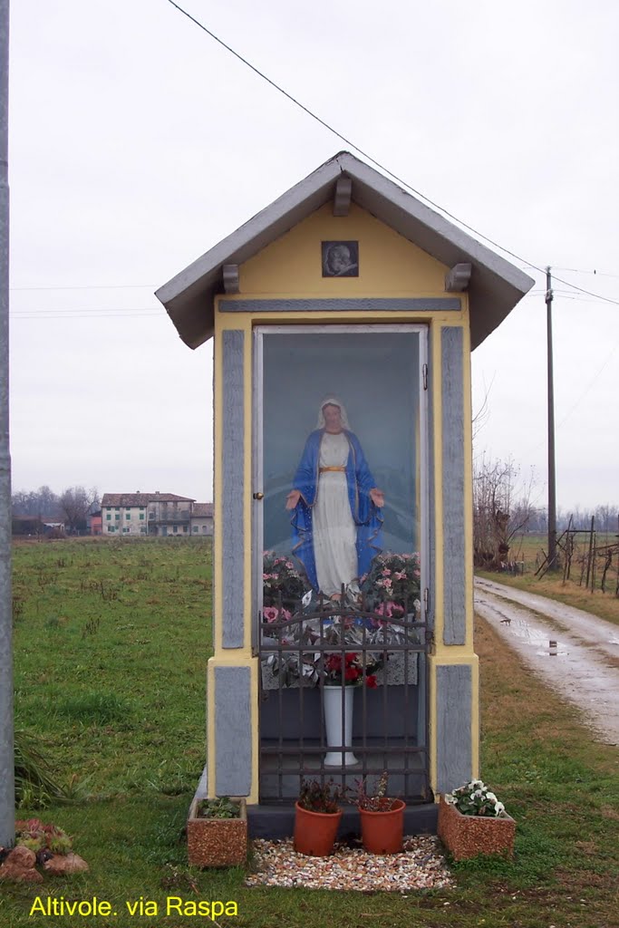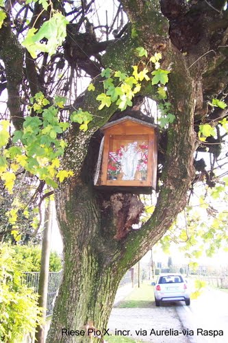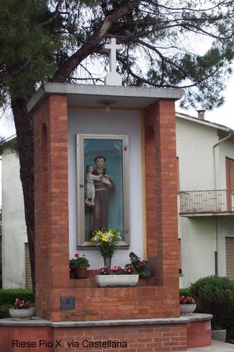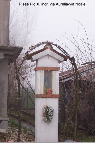 Quest’opera ha una storia: è stata realizzata in Thailandia con destinazione Burano e da qui indirizzata a titolo di offerta devozionale al paese di Riese dal benefattore buranese, ora defunto, Gianmario Tagliapietra.