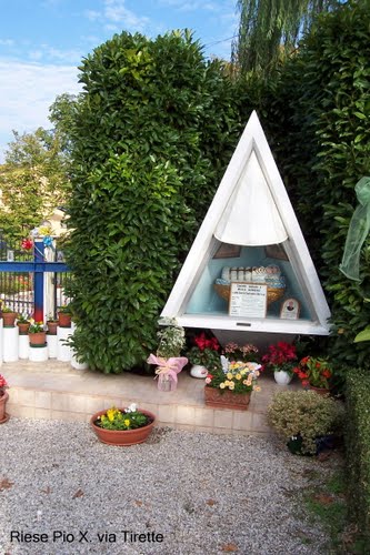 A circa 1km dalla casa natale di Pio X, verso Spineda, nel Cimitero di Riese Pio X c'è la tomba della famiglia Sarto. Qui furono sepolti i genitori di Pio X (della mamma Margherita si conserva la lapide originale dettata dallo stesso Pio X) e le sue sorelle. (Foto: Silvano Zamprogna)