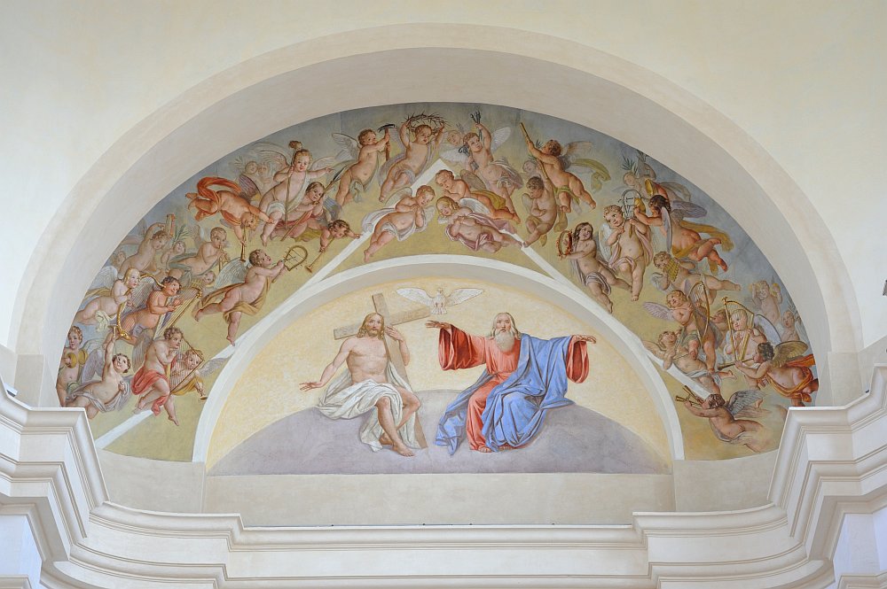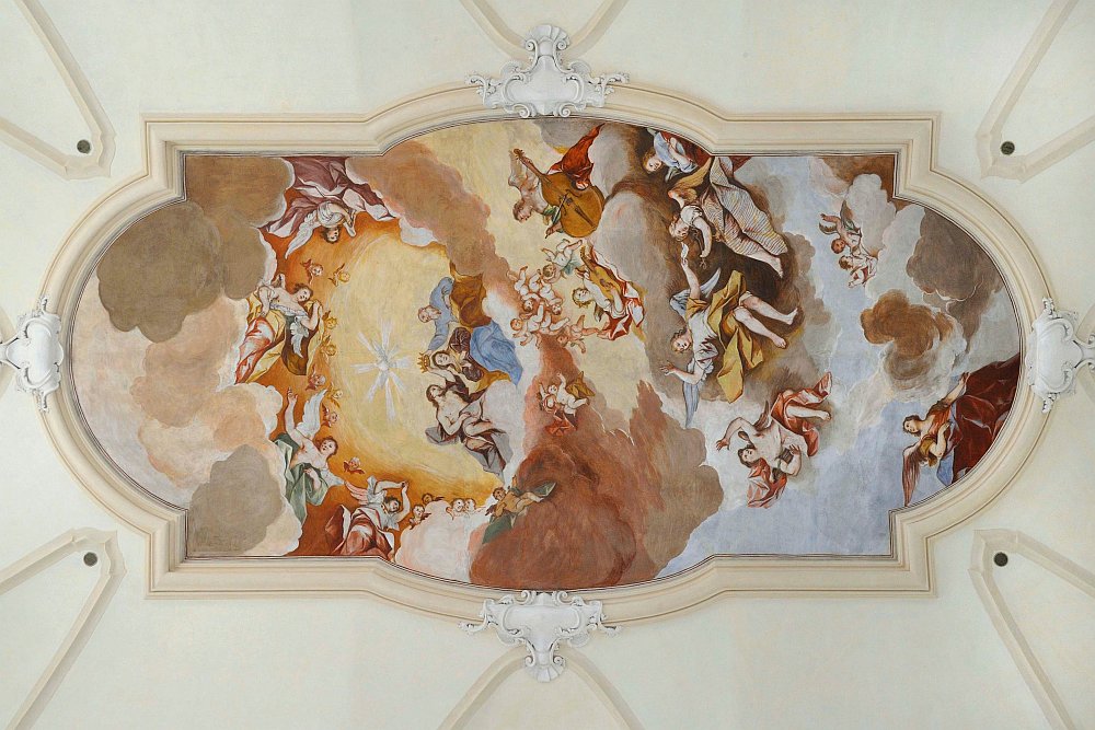 Diverse le opere di pittori oggi ancora anonimi che si conservano nel santuario, a cominciare dagli affreschi del soffitto e del lunotto sopra il portale d’ingresso, opera di un artista del XVIII secolo (? - comunque sia dopo il 1760), raffiguranti rispettivamente la Gloria di Maria ed il Padre Eterno con Gesù Cristo assisi sul globo terrestre.
