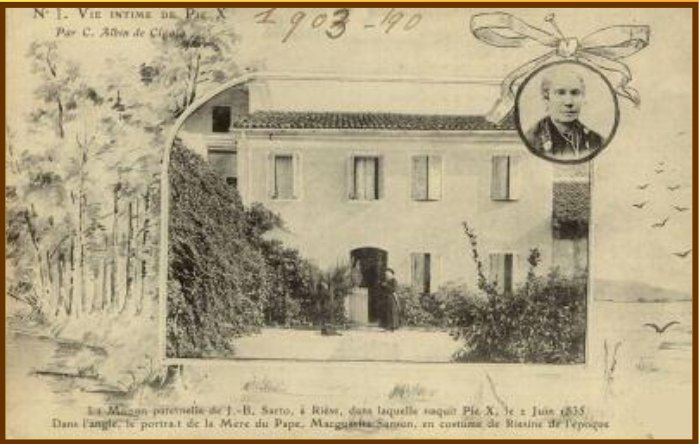 [4] Si veda una recente ricostruzione delle vicende dei Sarto nel volume BORTOLATO Q., La casa natale di Pio X ed il museo di S. Pio X Cenni storici e catalogo museale, Fondazione G. Sarto, 1992, pp. 9-24.